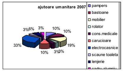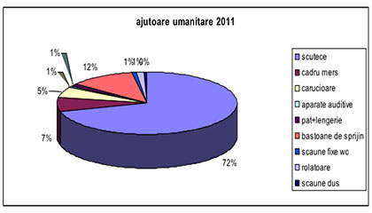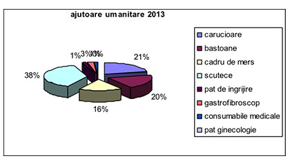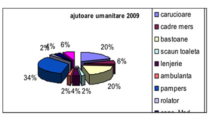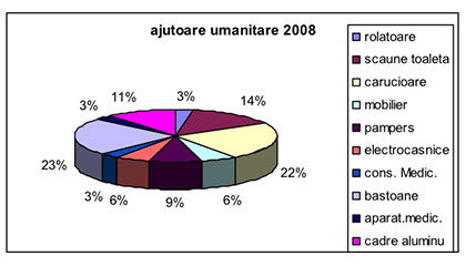 Tot în această perioadă 2006-2013, am distribuit persoanelor fizice precum și instituțiilor cu care avem încheiate acorduri de colaborare, ajutoare constând în dispozitive de mers, scutece pentru adulți, paturi de îngrijire, mobilier, obiecte electrocasnice, aparatură medicală etc.
