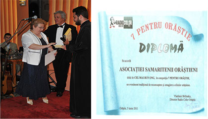 În luna iunie 2011 am fost onoraţi să fim nominalizaţi la Gala “7 pentru Orăştie” organizată de postul local Radio-color Orăştie la împlinirea celor 15 ani de activitate, ca fiind cel mai bun ONG pe lângă oameni de afaceri, medici, sportivi, profesori şi elevi care au primit recunoaşterea pentru valoarea şi activitatea lor
